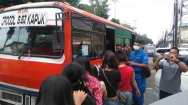 Sejumlah wanita pengunjung diskotek MG digelandang ke kantor BNN menggunakan metromini